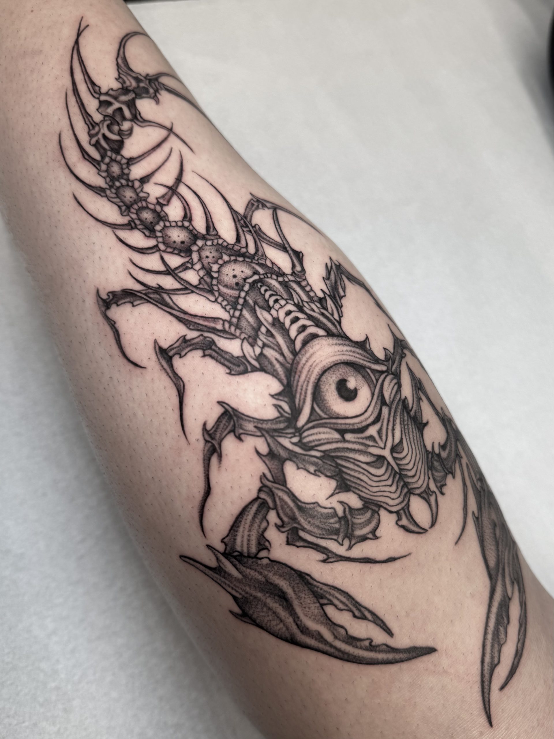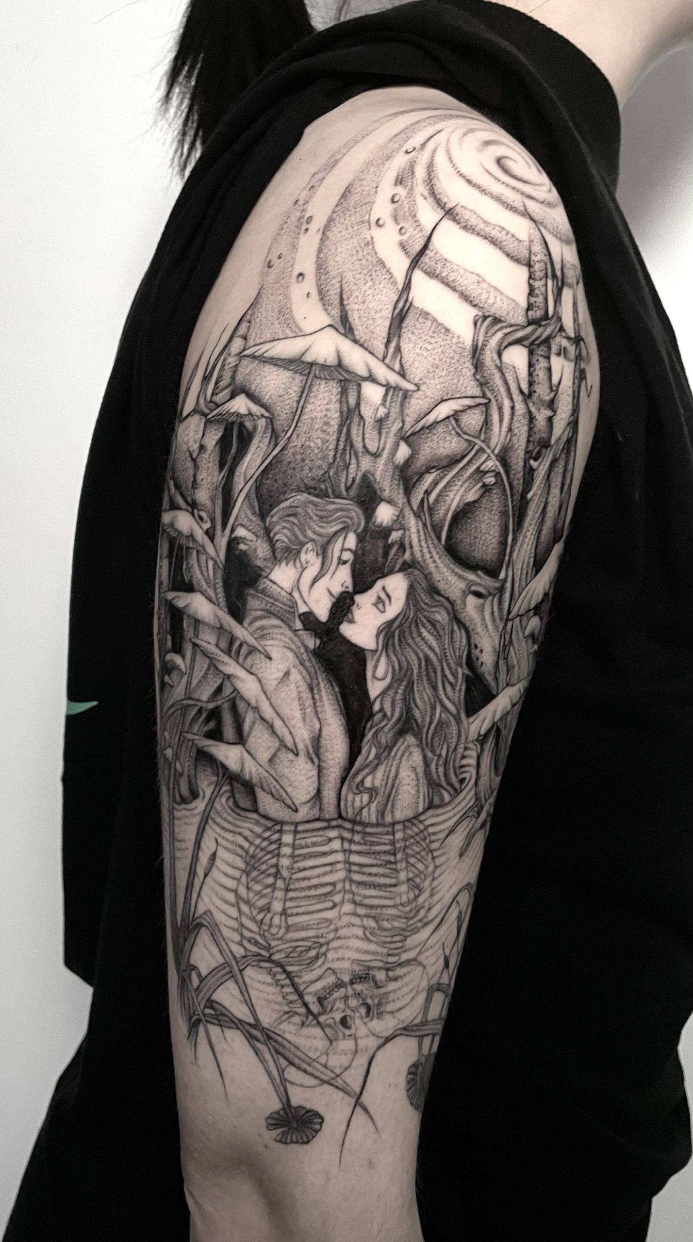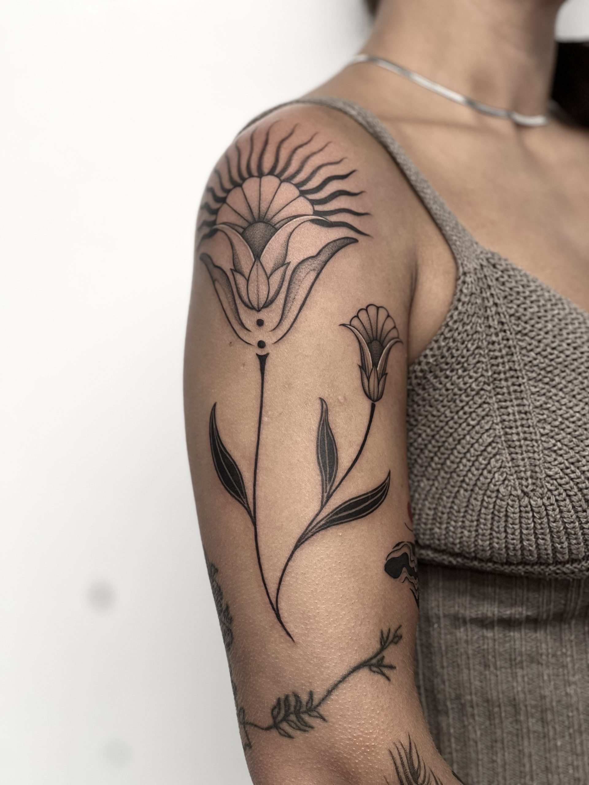 Elena, a.k.a Lele, was born in 1997 on the island of Crete. Her passion for art began at an early age, and she nurtured this interest by studying at the Department of Fine Arts at the University of Ioannina. After graduating, she transitioned into the world of tattooing, where she has since specialized in blackwork, blending her artistic foundations with intricate, bold designs.