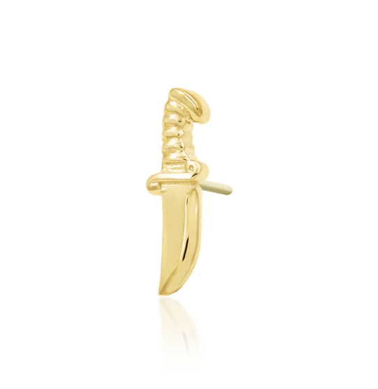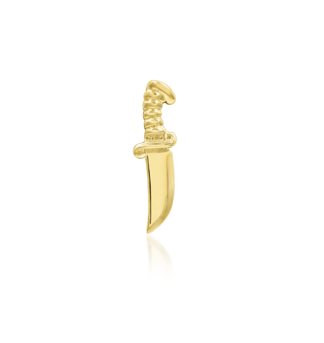 Cut Above! is a stylish and super high polished hunting style knife measuring 3mm x 9.5mm and available in 14K Yellow Gold.